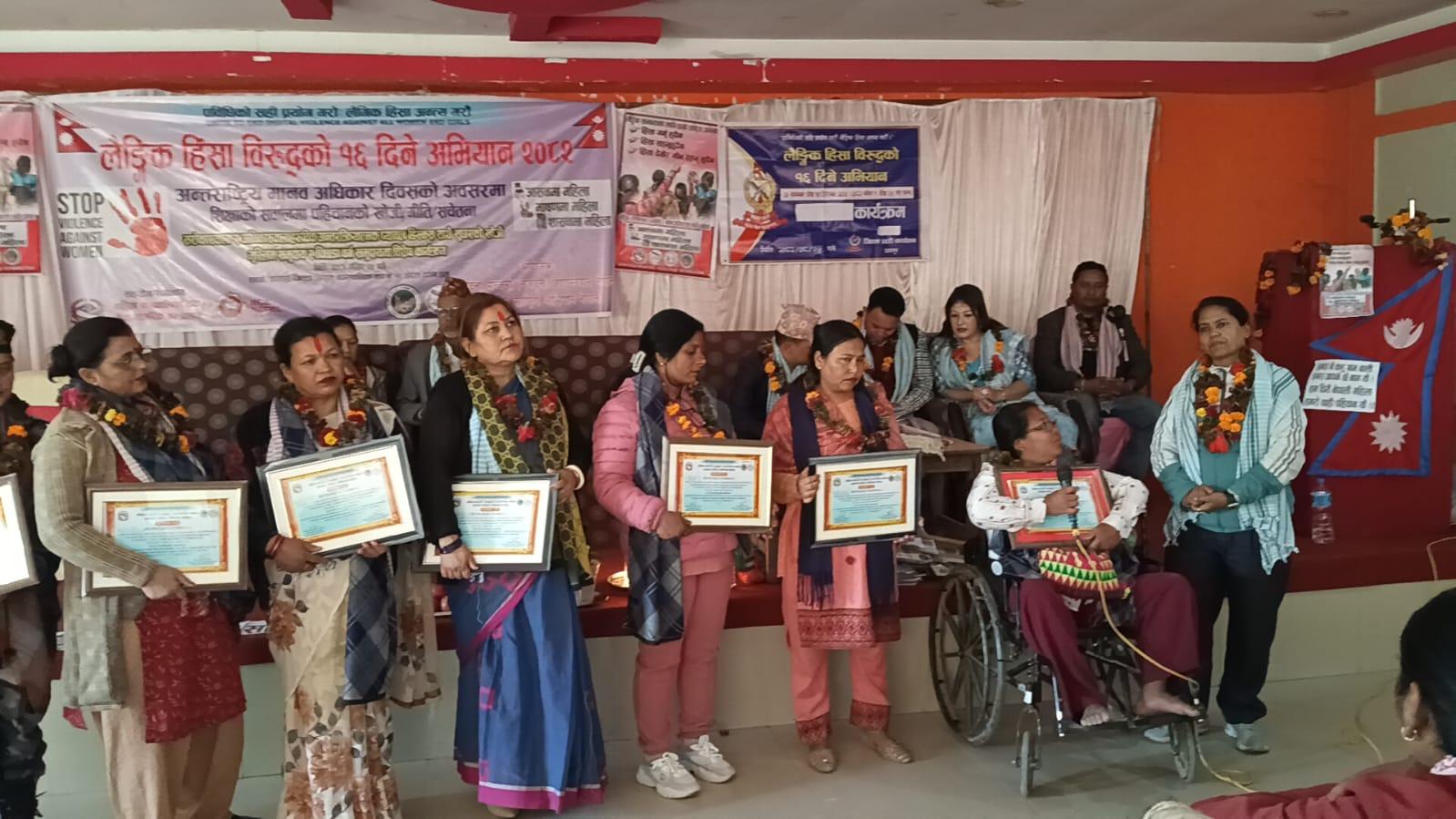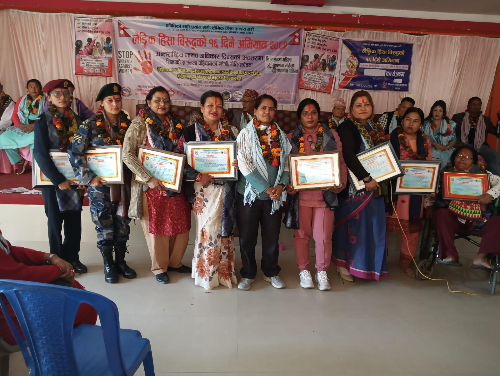 मादिना मञ्जरी फाउन्डेसनद्वारा १६ दिने अभियानको समापन, १० महिलालाई सम्मान ; फोटो ग्यालरी